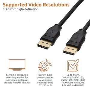 • DisplayPort to DisplayPort cable transmits HD audio and video from computer to display, Cable supports 4K@60Hz, 2K@165Hz, 2K@144Hz Video.