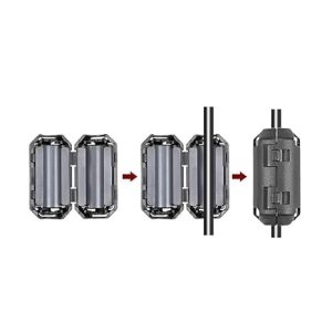 Scope of application: applied to all kinds of electronic connecting wires, wiring harnesses, home appliances, air conditioners, computers, inverters, electric welding machines, power cords, etc. (Note: When the wire is too thin, you can wind a few more turns at the magnetic ring to achieve Loosening effect.)- Material: Ni-Zn Ferrite